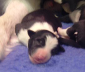All the puppies were weighed at birth and were between 14oz and 12oz — big puppies! They're all listed in the order they were born.
