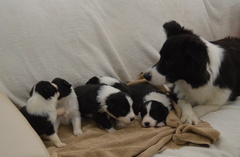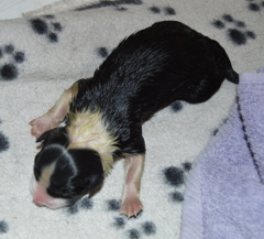 Buffy's 5 puppies (plus one stillborn baby) were born between 8am and midday. Photos below in order of appearance. Thanks to Denise for her help and Alison for her support throughout the whelping.