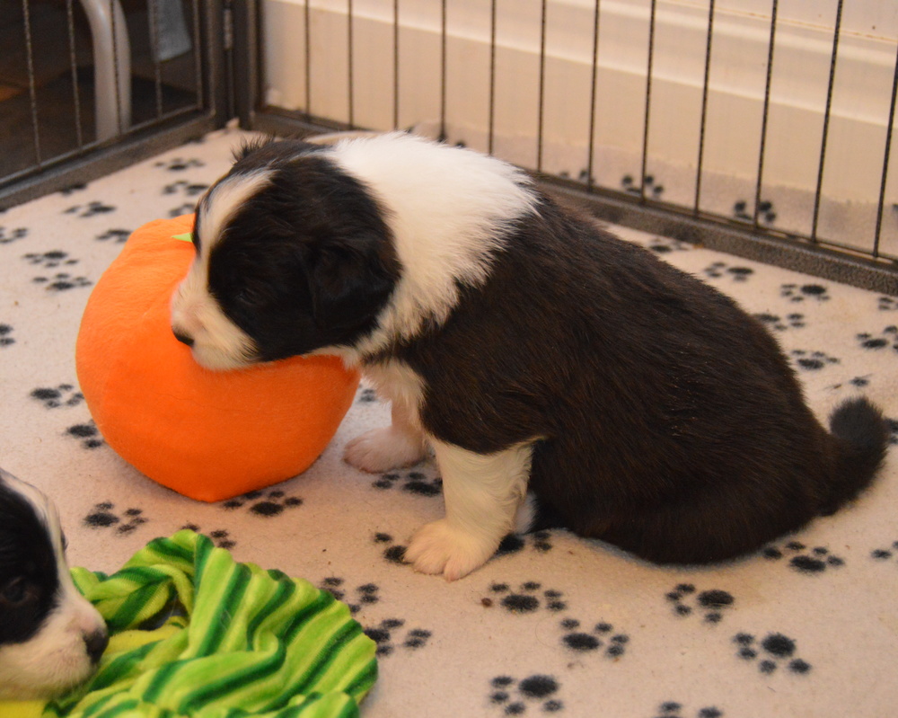 The first puppy to leave, boy 4, now known as Ollie (Anadune Extraordinary). Some photos of him below getting ready to leave — he was not impressed with the bath bit, but at least got to go in the 'big boy bed' for drying time ☺