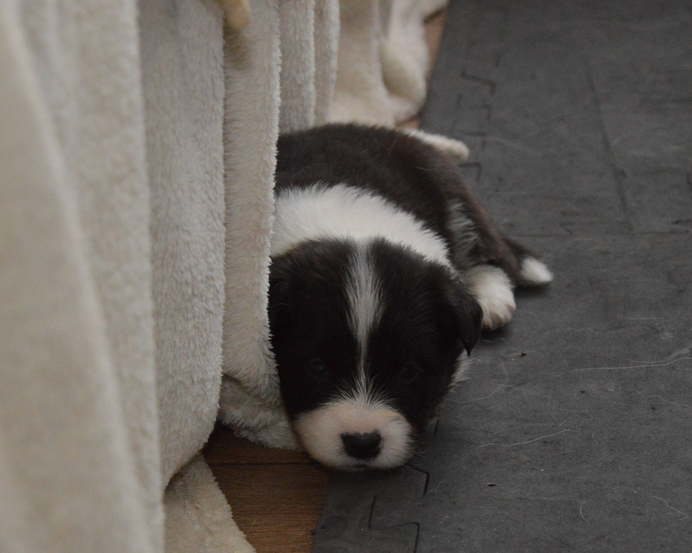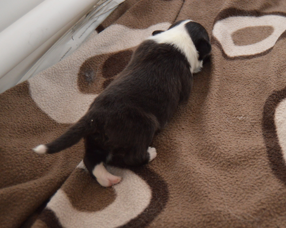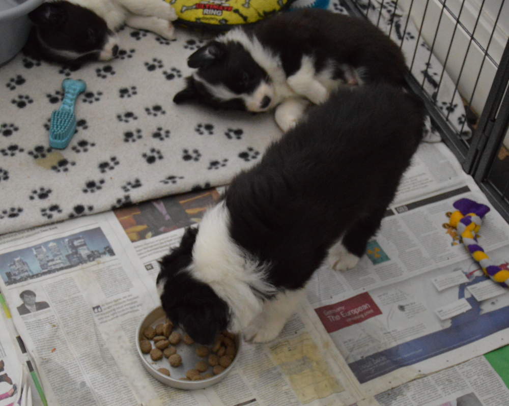 More puppies leaving today: Rafferty (boy 3), Anadune Enter The Dragon, our co-own boy. who'll be living in Wales, and Loki (boy 2), Anadune Eternal Flame, who won't be living too far away from us ☺ And Smudge (boy 1) in his new home ☺