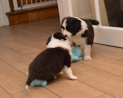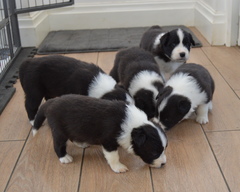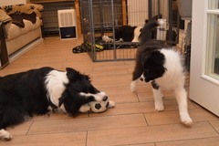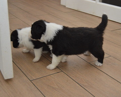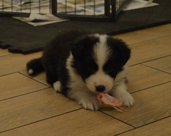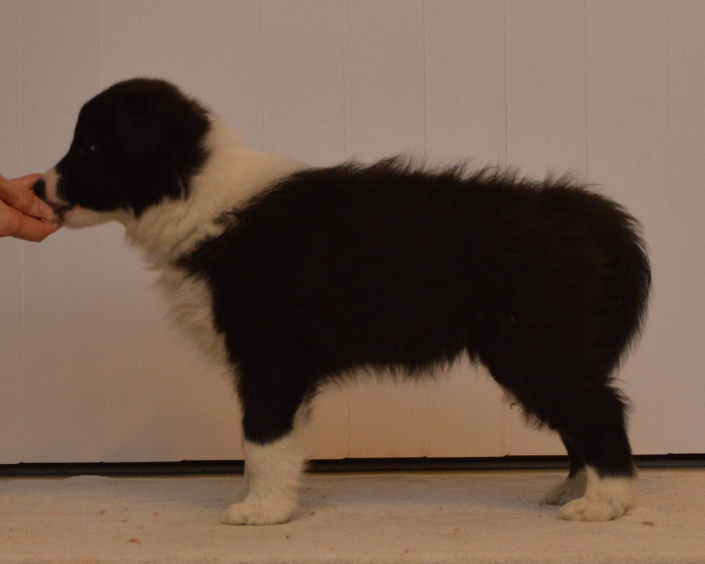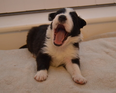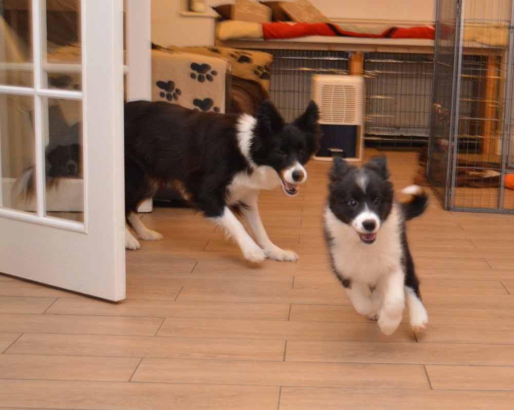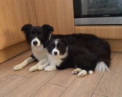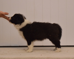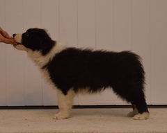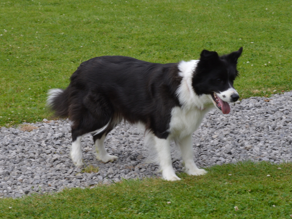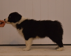 Buffy is quite a lively dog, she'll do the most running of all my dogs when out on a walk, but she does settle nicely at home and usually puts herself well out of everyone's way, so she can see things, but isn't a nuisance. She's very fast and biddable, she has been very easy to train. As for Slider, he has a very nice temperament, doesn't appear to have a mean bone in his body, is very keen to please his owners and of course has numerous conformation achievements that confirm his gorgeous structure. We are expecting these pups to be fairly high drive, but very biddable, and would therefore prefer homes where the pups will get to do something, be it agility, obedience, herding, flyball ... Puppies are CEA, CL and TNS normal by parentage. More details of both parents can be seen on their pages.
