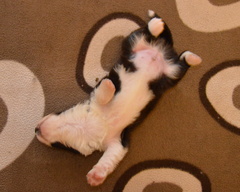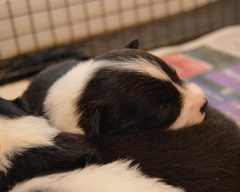 Buffy's daughter, Anadune Elixir of Life, says hello to all her brothers! And a photo of Rafferty looking all settled in in his new home.
