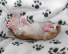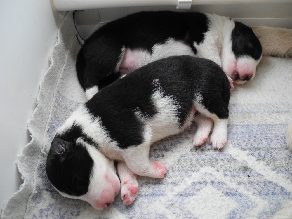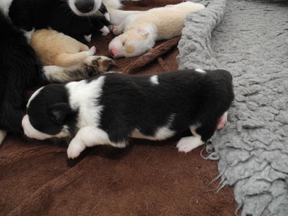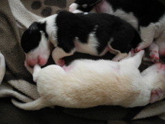 The pups' first proper photo shoot: it's really not that easy at 3 weeks old, hopefully they'll be able to show off how pretty they really are in a weeks' time. The first black girl in particular wasn't enjoying her session and kept trying to disappear off — she does have a level topline, honest!