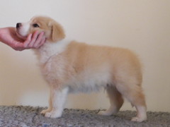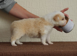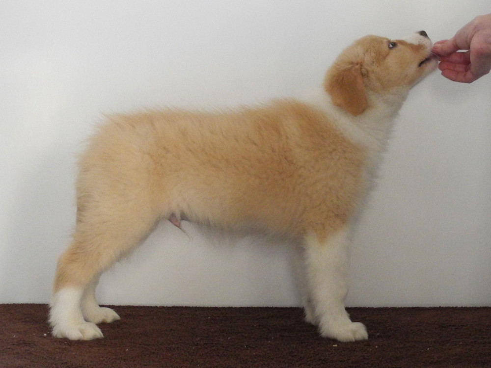 A video of the golden red girl coming when called, tugging and playing with toys at 5 weeks old is available here.