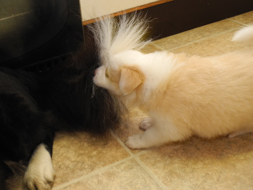 Puppies got to play with their half sister, Buffy: she thinks they're all pretty great!