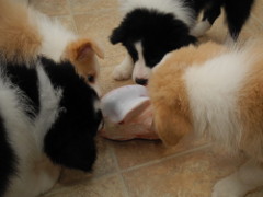A video of the pups meeting a marrow bone for the first time is available here — some definitely thought that it might eat them rather than the other way around.