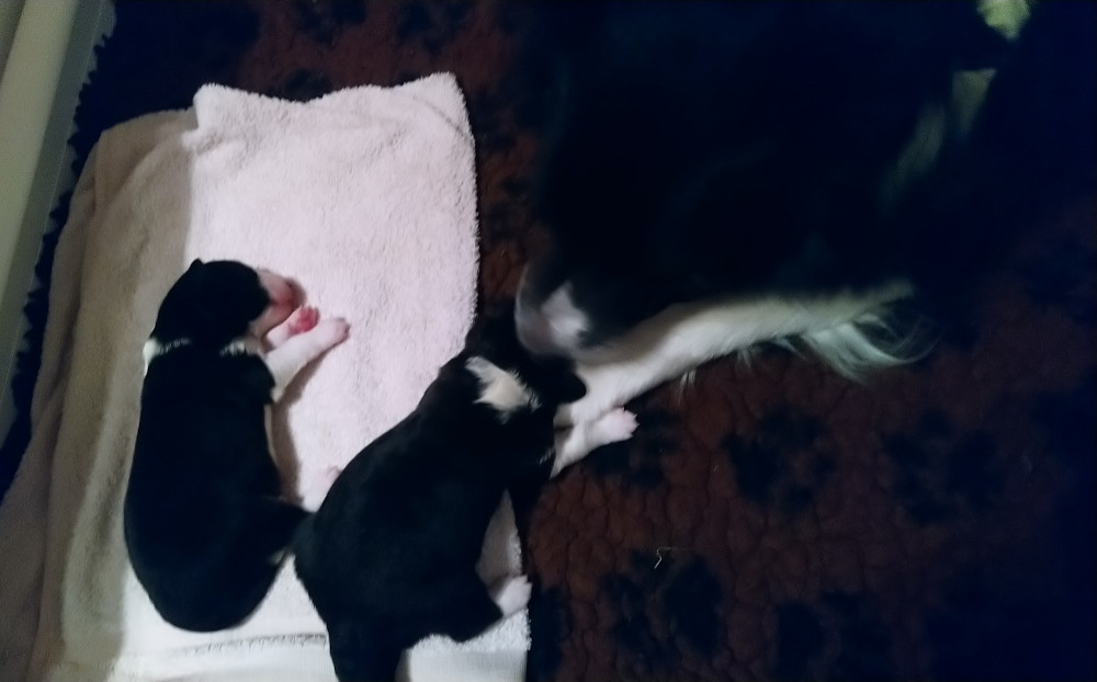 Pip's puppies were born between 6:50am and 9:56am. Photos below in order of birth. Thank you Corinne for not complaining about an early morning phone call!