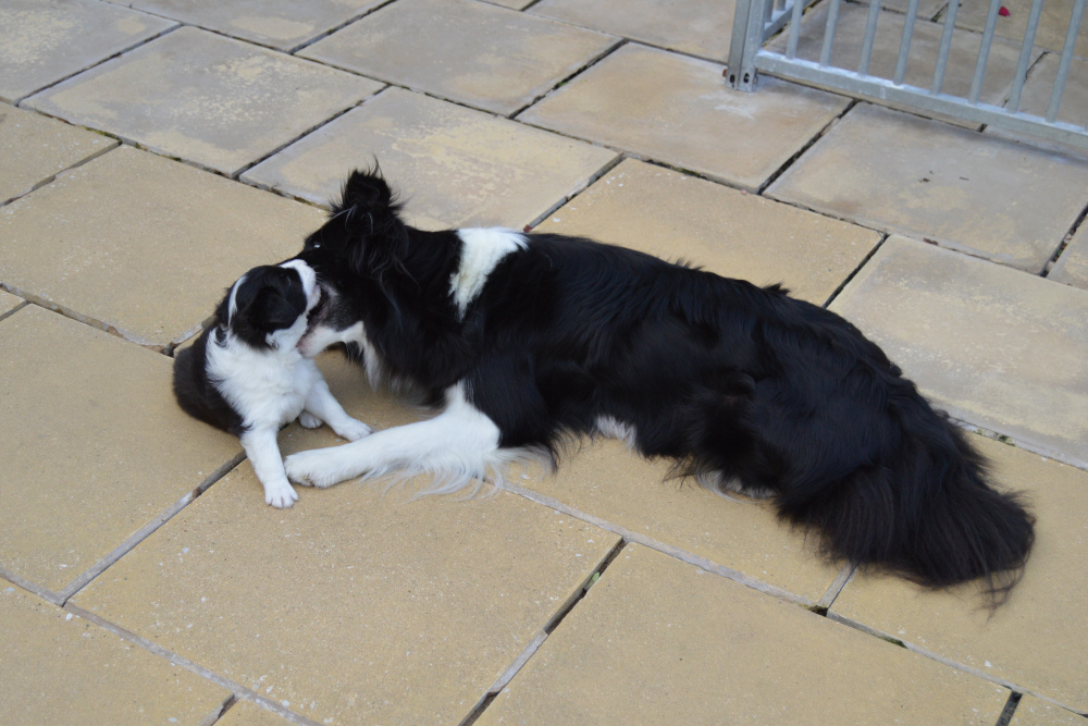 Today's novel experience was romping around outside in lots of rain - we all needed towelling off afterwards!