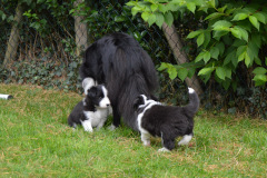 We are incredibly grateful to have been allowed to use Zeb (Sh Ch Madeleys Time Challenger). Born in 1997, I only met him once, but I absolutely loved his children. In the children I met, I saw beautiful, athletic Border Collies with lovely temperaments and drive. Many went on to have very successful obedience careers, and his son from the Jonjosam kennels went on to be an obedience champion. Some of his semen was stored and when the 2020 restrictions were lifted enough for vets to start doing repro work, I asked if there was any way I could use him, not really expecting the answer to be "yes". But the answer was a very kind "yes"!